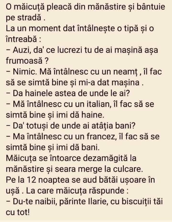 – V-am spus ca nu e de vanzare.. dar daca veniti cu un prieten, va facem 2 circumcizii la pret de una!