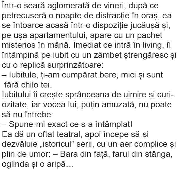 – Apoi domniță dragă, după ce m-ai descheiat de trei ori la șliț am crezut că suntem prieteni.