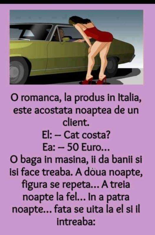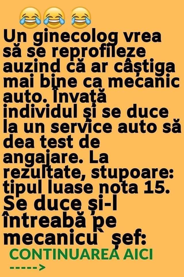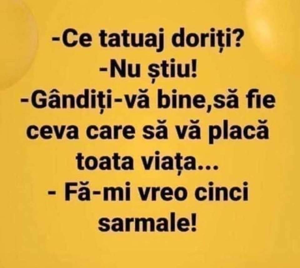 O bunicuță privește cu mirare o domniță care are un tatuaj cu hieroglife pe gât.– Mamaie, la ce te holbezi?– Mă uit la ce scrie pe tatuajul ăla al tău, mamaie.– Și ce? Pe vremea ta nu existau tatuaje?– Cuconiță, și pe vremea mea existau de toate, dar, predau limba chineză și încerc să înțeleg, … Read more