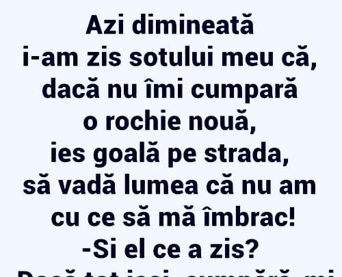 La şcoală, la clasa lui Bulă, ora de zoologie. Învăţătoarea: – Mai, Ionel, ia numeşte tu o insectă! Ionel: – Albina! Invatatoarea: – Bulă, ia numeşte şi tu o insectă! Bulă: – Păi, … albina! Învăţătoarea: – Asta s-a mai zis o dată! Ia zi ceva din capul tău! Bulă: – Păduchele! Sunt bancuri si … Read more