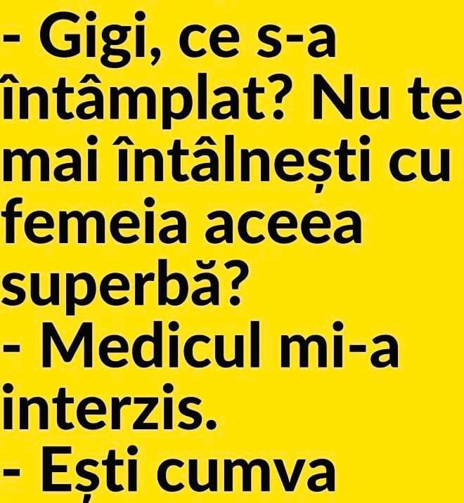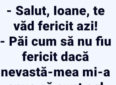 Salut Ioane te vad fericit azi !Pai cum sa nu fiu fericit daca nevasta-mea mi-a spus ca sunt cel mai …