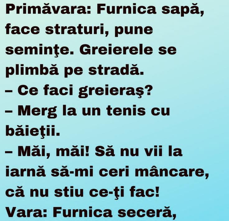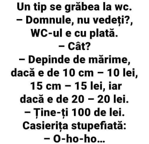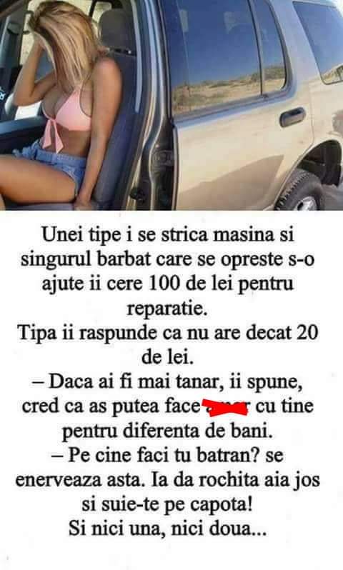 Un tip vine intr-o seara acasa cu o rață la subrat.Se duce la nevasta si zice “Uite scroafa cu care mi-o trag constant.”“E o rață imbecilule!”, raspunde ea.Barbatul replica “Nu vorbeam cu tine”. Citiți și: Un copil se juca in nisip. Vine un jandarm si-l intreaba:– Ce faci?– Un jandarm!– Si din ce-l faci?– Din … Read more