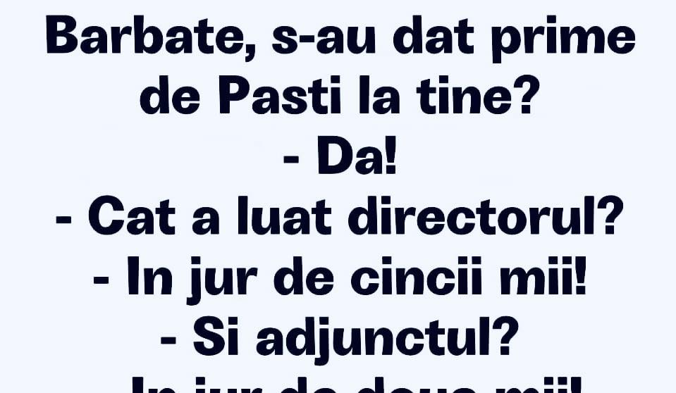 Barbate s-au dat prime de Pasti la tine?? Da! Cat a luat directorul?? In jur de concii mii! Si adjunctul??