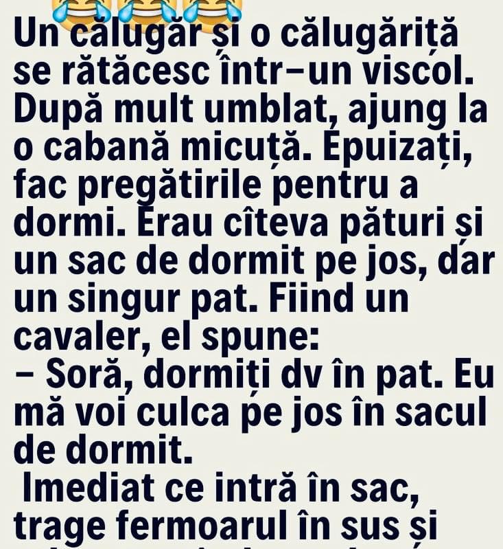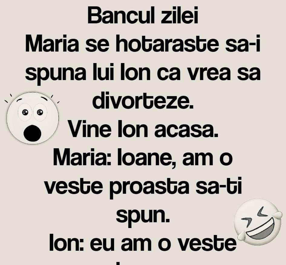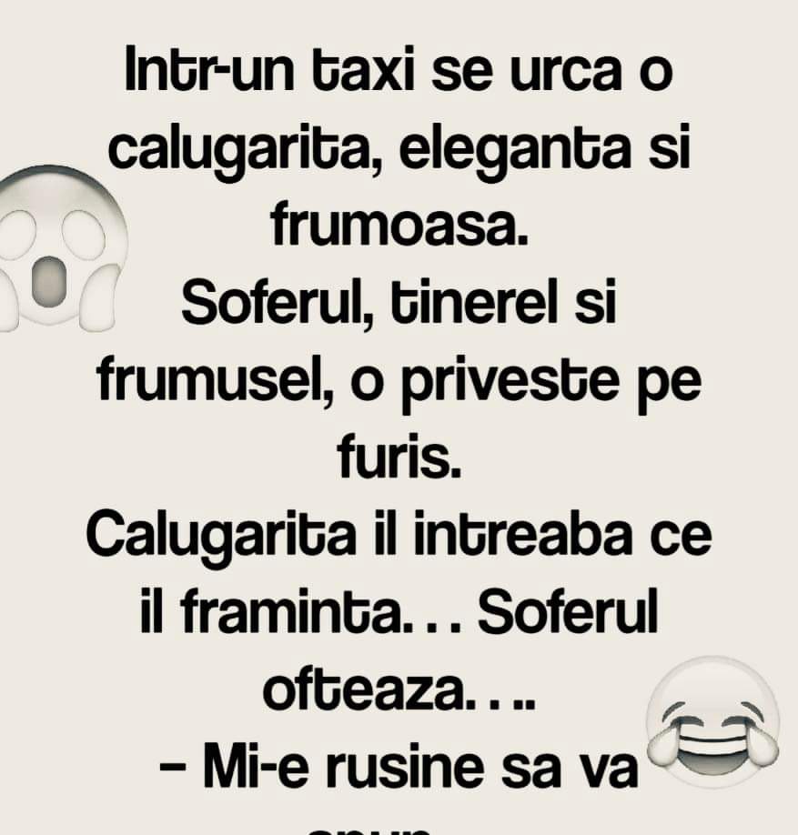 Alinuta era eleva in clasa a 10-a.Intr-o zi, vine acasa, intra in sufragerie unde era taica-su si spune: – M-am indragostit de vecinul de la etajul trei si o sa fug cu el.Taica-su fara sa isi mute privirea de la televizor ii raspunde: Bravo, sunt mandru de tine! Este cea mai buna decizie pe care … Read more