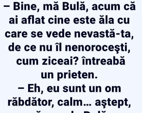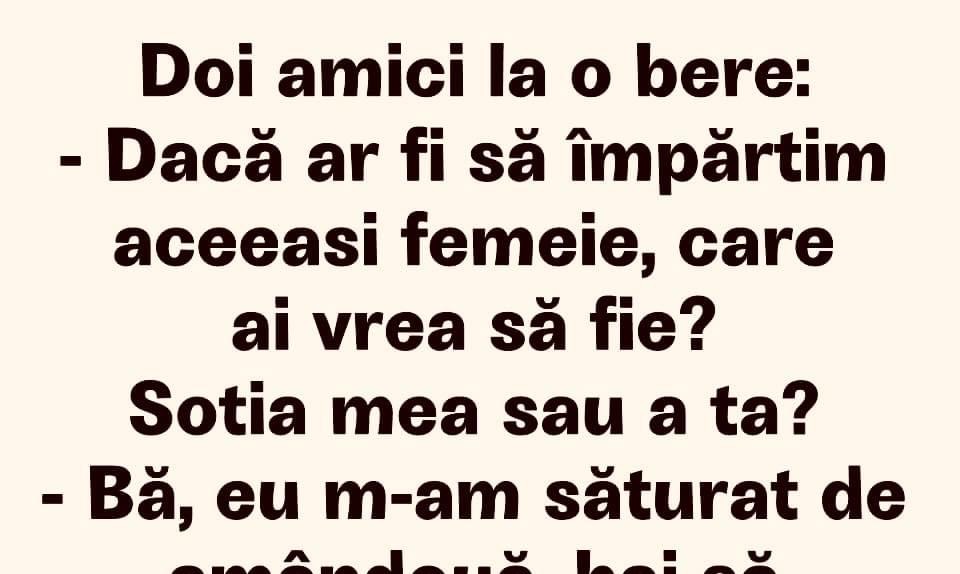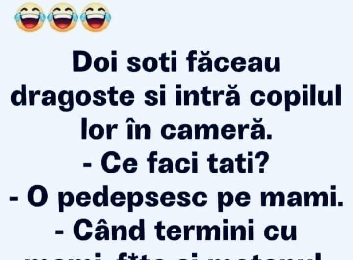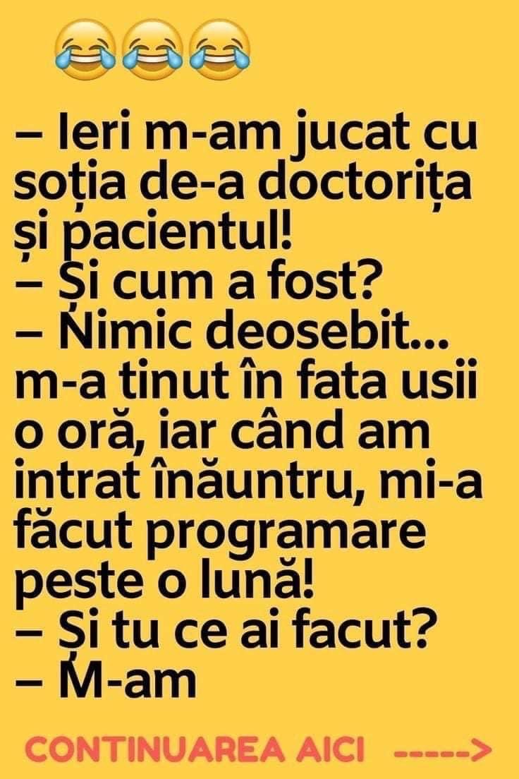 Ieri m-am jucat cu soția de-a doctorița și pacientul! – Și cum a fost? – Nimic deosebit… m-a tinut în fata usii o oră, iar când am intrat înăuntru, mi-a făcut programare peste o lună!– Și tu ce ai facut? – M-am dus peste drum la particular și am plătit! Maaaa, tu vrei să te … Read more